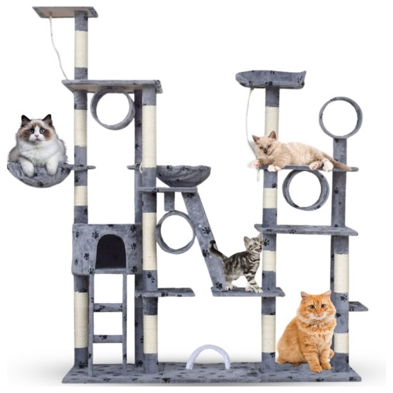 • Rozbudowana Konstrukcja (9 Poziomów): Zapewnia mnóstwo przestrzeni do zabawy i relaksu. Idealny dla kilku kotów, które mogą bawić się i odpoczywać, nie wchodząc sobie w drogę.